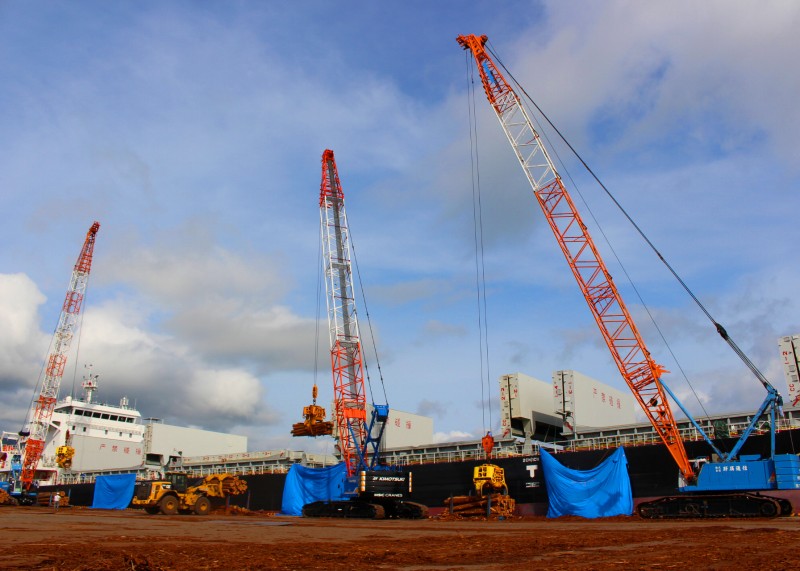 また、各港湾業者様からのご依頼により、建築用鋼材の水切りやコンテナの積込みなども行っております。