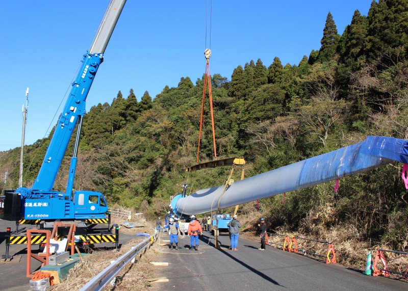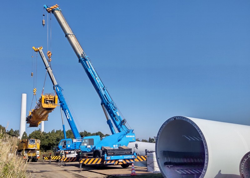 風力発電所建設時には基礎工事から建設工事までの間、相判クレーンとして従事しております。