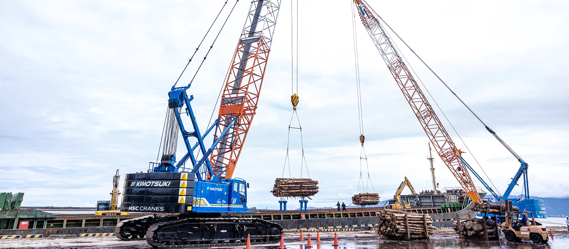国際バルク港に選定され、輸出用原木出荷量で国内第1位を誇る鹿児島県志布志港や、隣接する宮崎県串間市の福島港において、中国向け輸出用丸太のクレーン荷役作業を担っております。